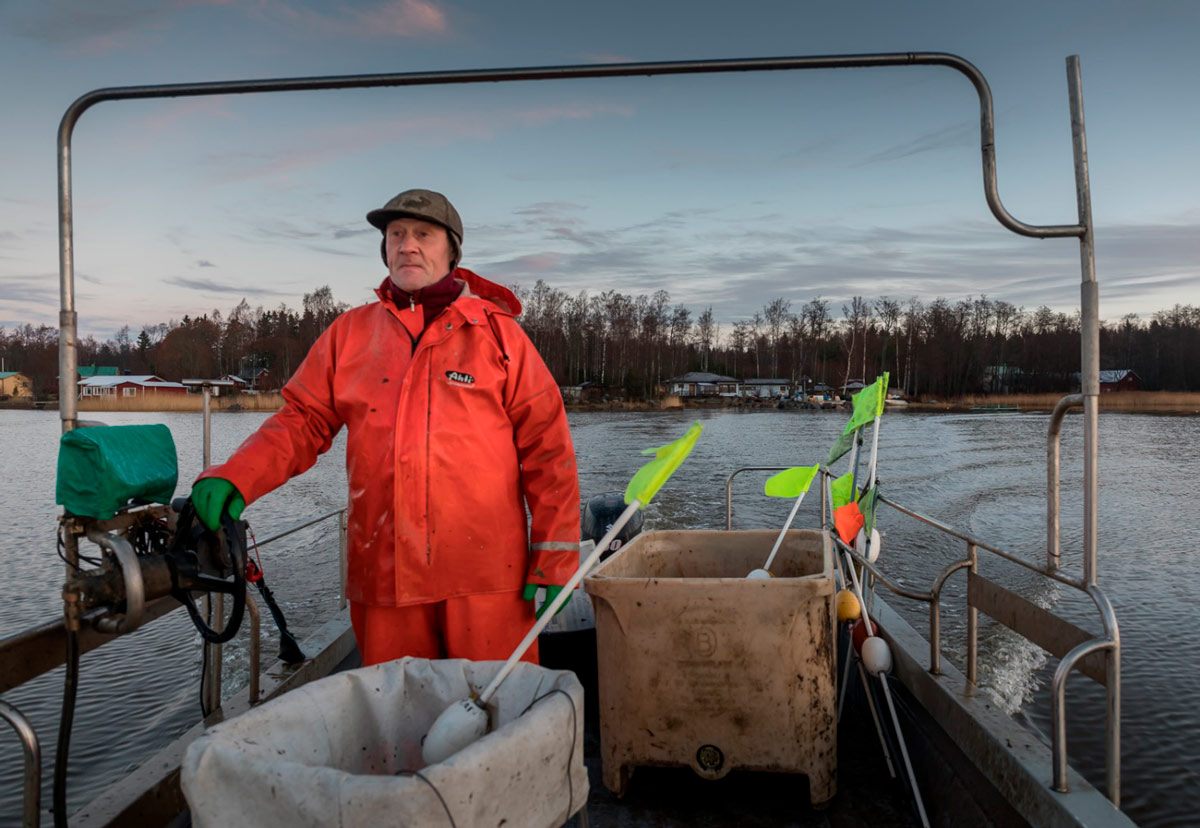 Kalastaja Jari Ratilainen on marraskuisena aamuna lähdössä kotirannastaan pyydyksille.